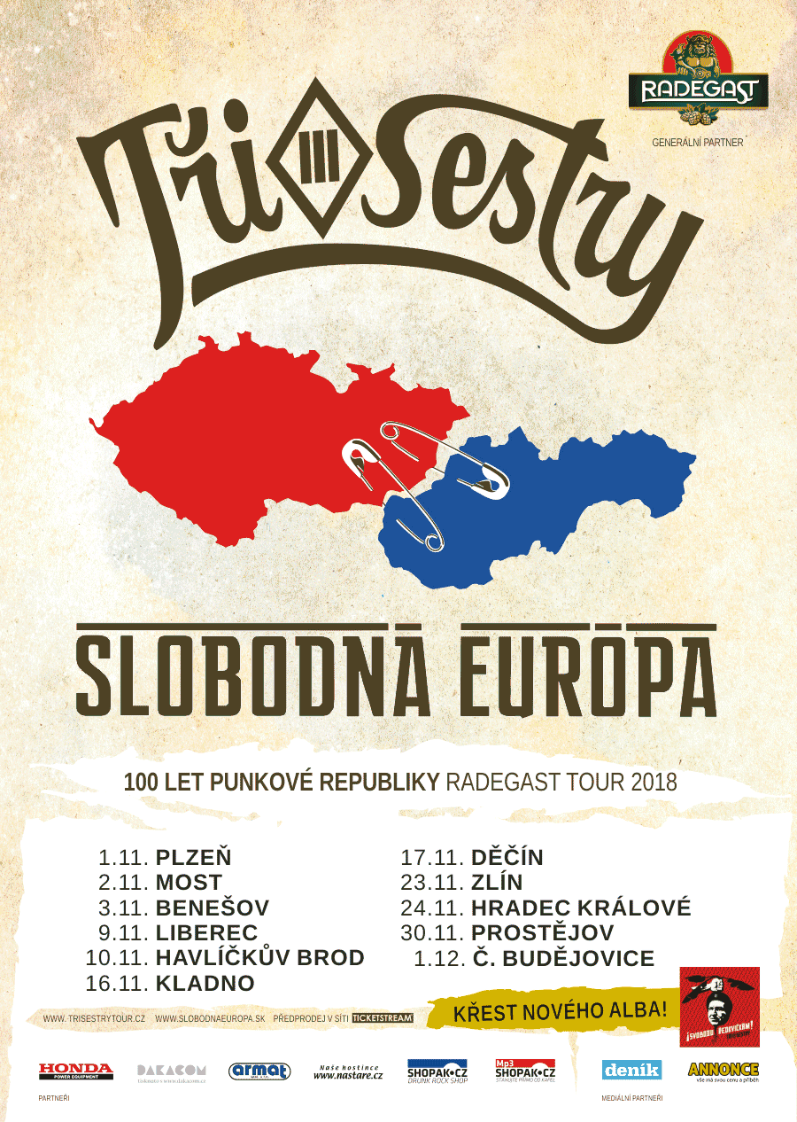 - Tři sestry + Slobodná Európa: 100 let punkové republiky Radegast tour 2018